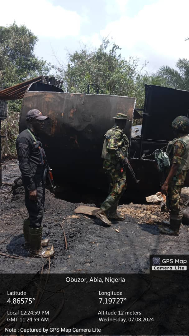 According to the Acting Deputy Director 6 Division Army Public Relations, Lieutenant Colonel Danjuma Jonah, the discovery was made at Dasaba Creek, where One Illegal Refining Site, One Oven and a massive metal reservoir containing products suspected to be stolen crude oil estimated at over 110000 litres.